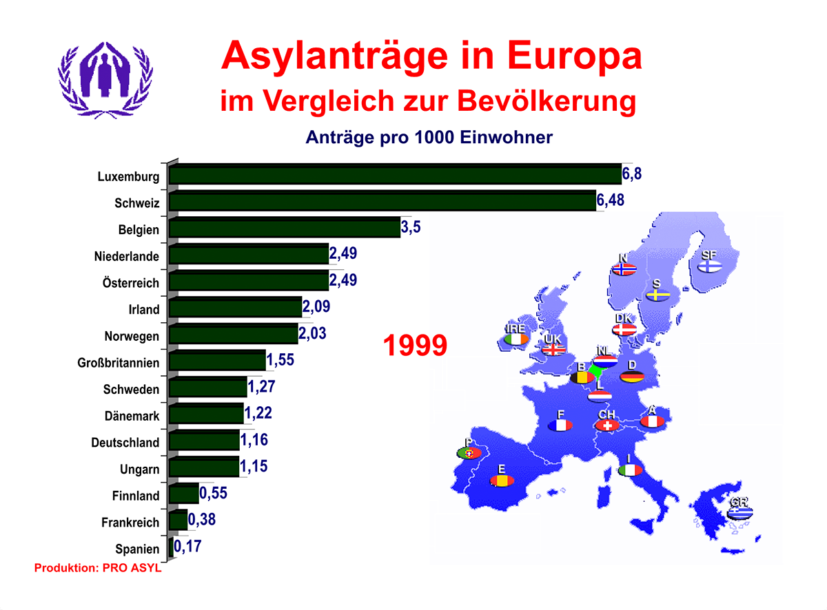 siehe auch: Asylanträge Europa im Vergleich zur Bevölkerung 2000