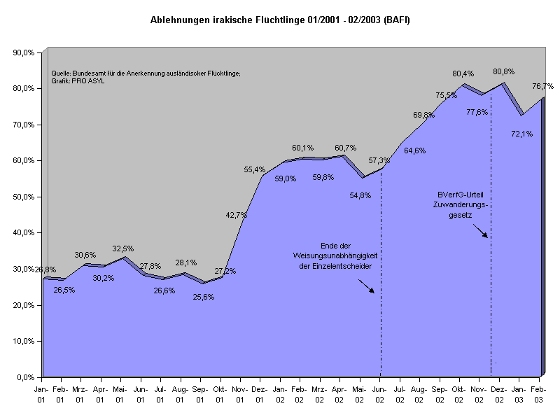 Ablehnung irakischer Flüchtlinge 01/2001 – 02/2003 (Grafik)
